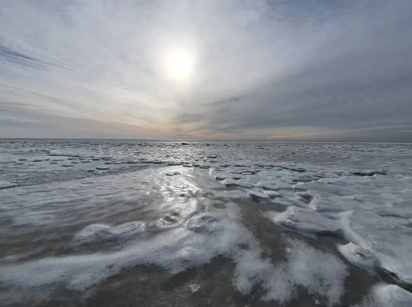 De contrasten waren enorm: waar we een week eerder nog dik ingepakt op het ijs stonden, liepen velen nu in T-shirt of zelfs korte broek in de zon. Maandag 22 februari was de lucht bovendien gevuld met Saharastof, wat de zon een gelige gloed gaf.