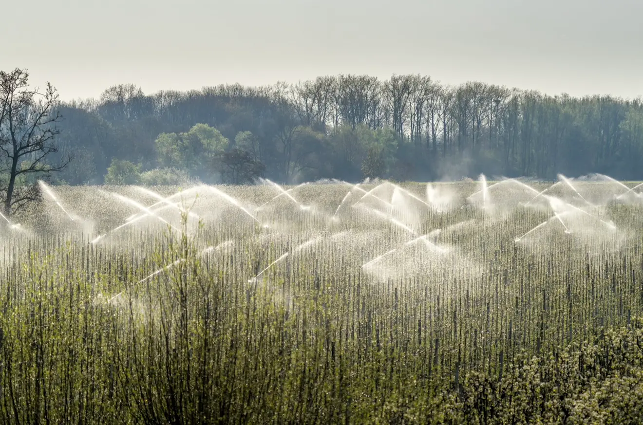 Om te voorkomen dat opengaande knoppen en bloesem bevriezen, spuiten telers de bomen nat met water. Dit wordt gedaan met een sproei-installatie in de fruitgaard. Het water bevriest rondom de knoppen en bloesem. Het ijs werkt vervolgens als een soort jasje en beschermt de toekomstige vrucht tegen vorstschade. Dit werkt op twee manieren.